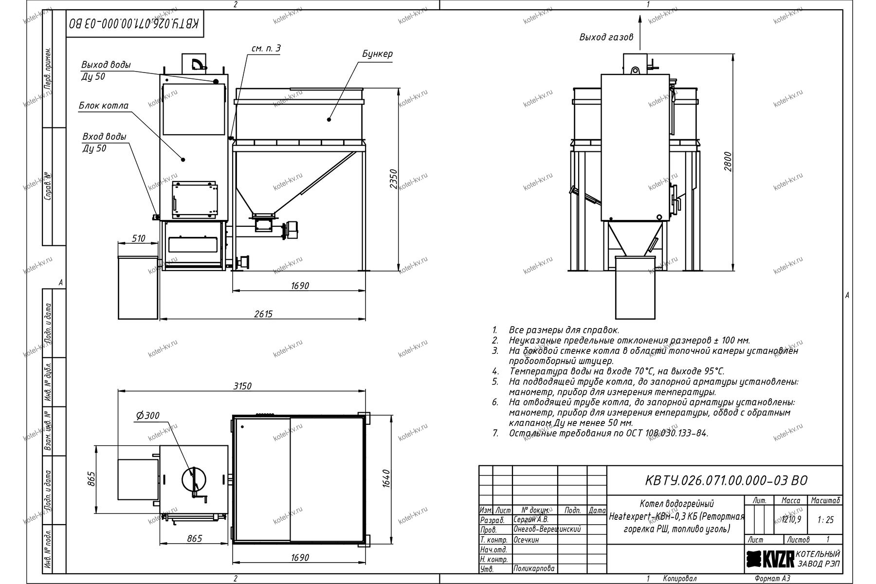 Конструкция автоматического котла на угле 300 кВт